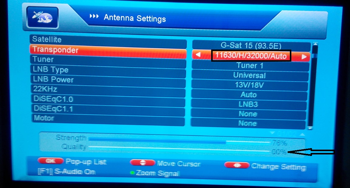 main ne khud 4 feet pe set kia hai max 68% singnal atee hai.....Sb sy weak is ki yeh frequency hai 11010 v 32000 wali