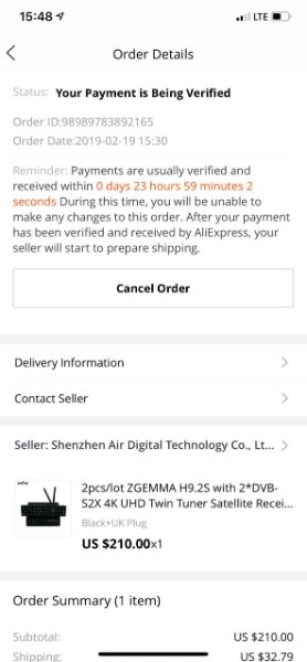 Purchased zgemma h9.2s from aliexpress