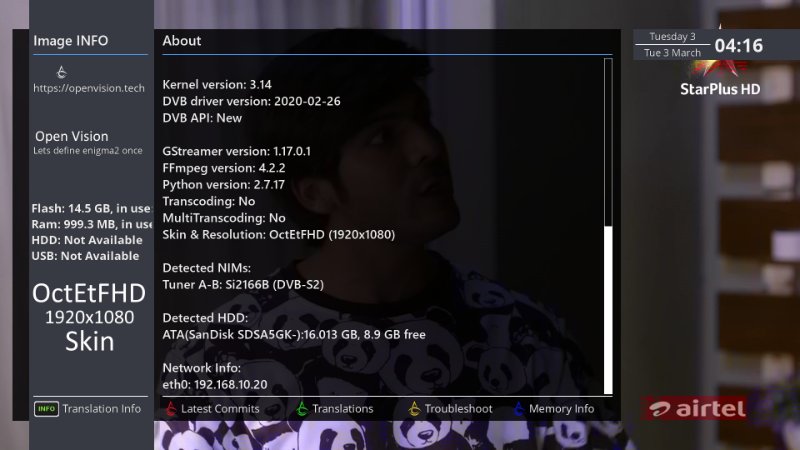 Vu+ par meri posts search karen driver main ne patch kiye hantaree wrote: 03 Mar 2020, 8:55 am i love openvision image due to its fast speed .